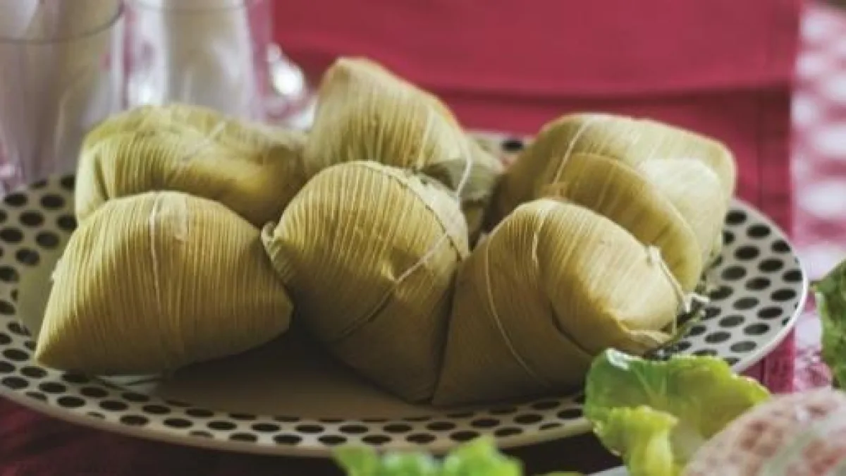Tamales: Masa de harina de maíz y zapallo anco con relleno de carne de cerdo, aceitunas, huevos, pasas de uva y condimentos. Es cubierta con "chala" (hoja del choclo). Es atada y cocinada en una olla con agua hirviendo y sal.