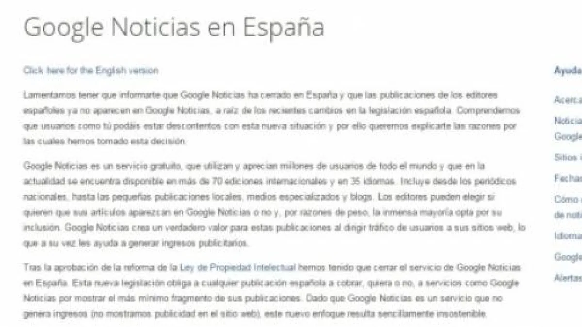 Google, que considera esto absurdo einsostenible, pues es un servicio gratuito, solicitado por los propios editoresy por el que no recibe compensación económica, se ha largado de España.